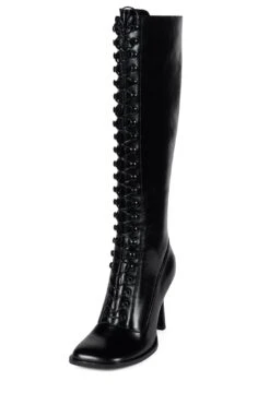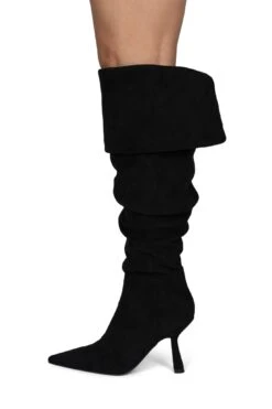 Pointed-toe knee-high sculpted heel boot with foldover cuffÂ
