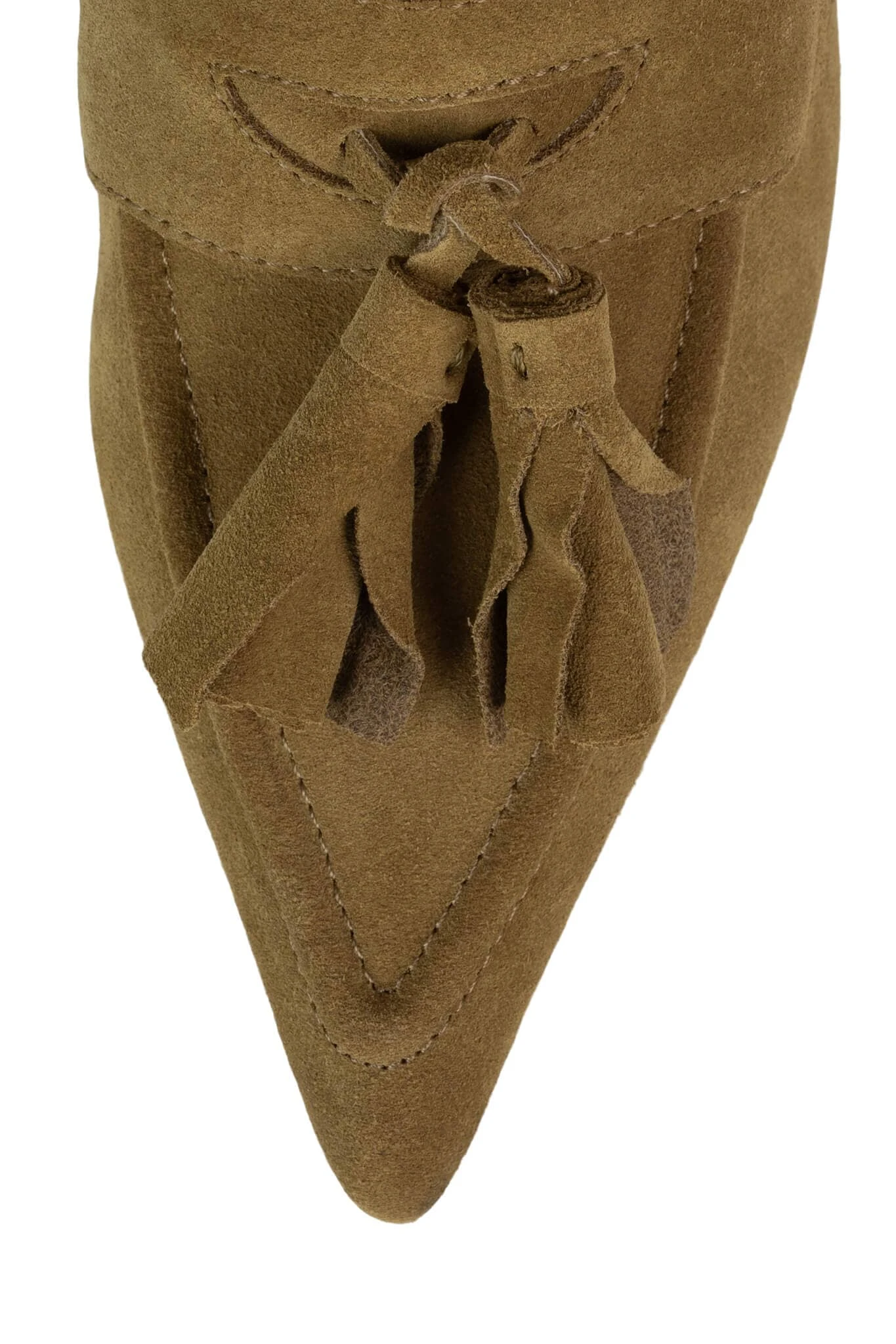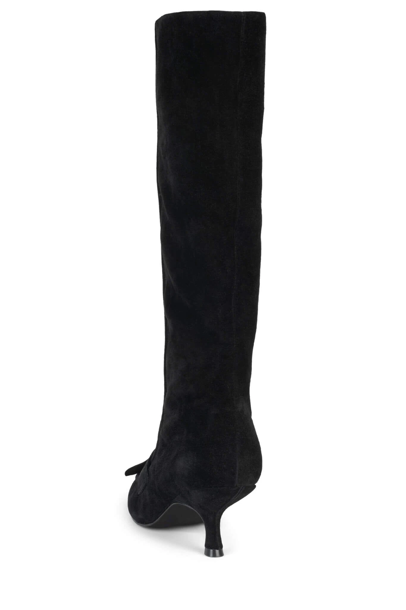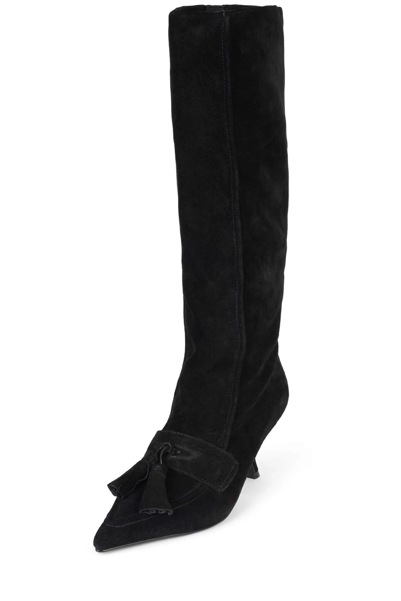 Sculpted kitten heel knee-high boot with loafer tassel detail