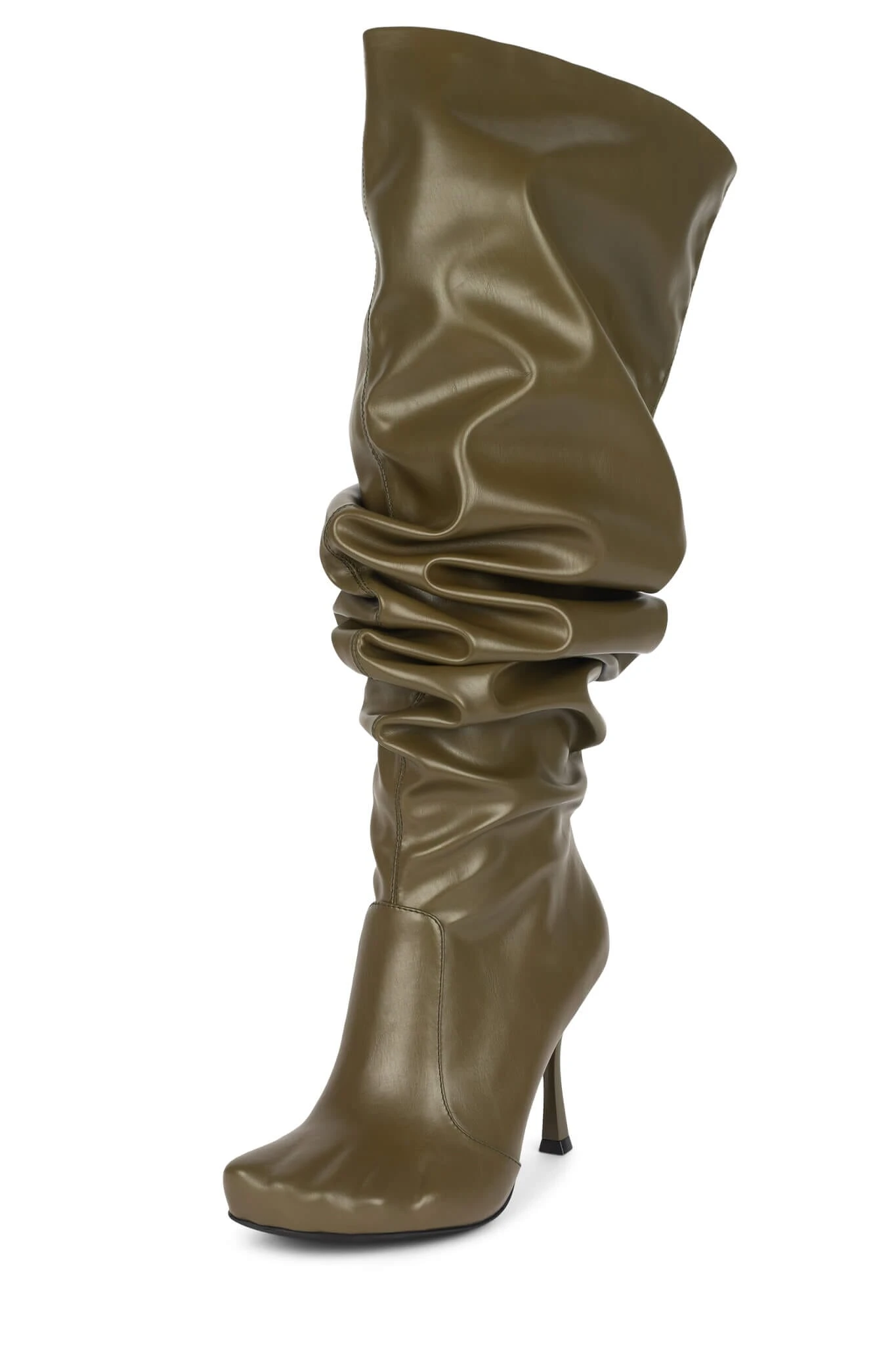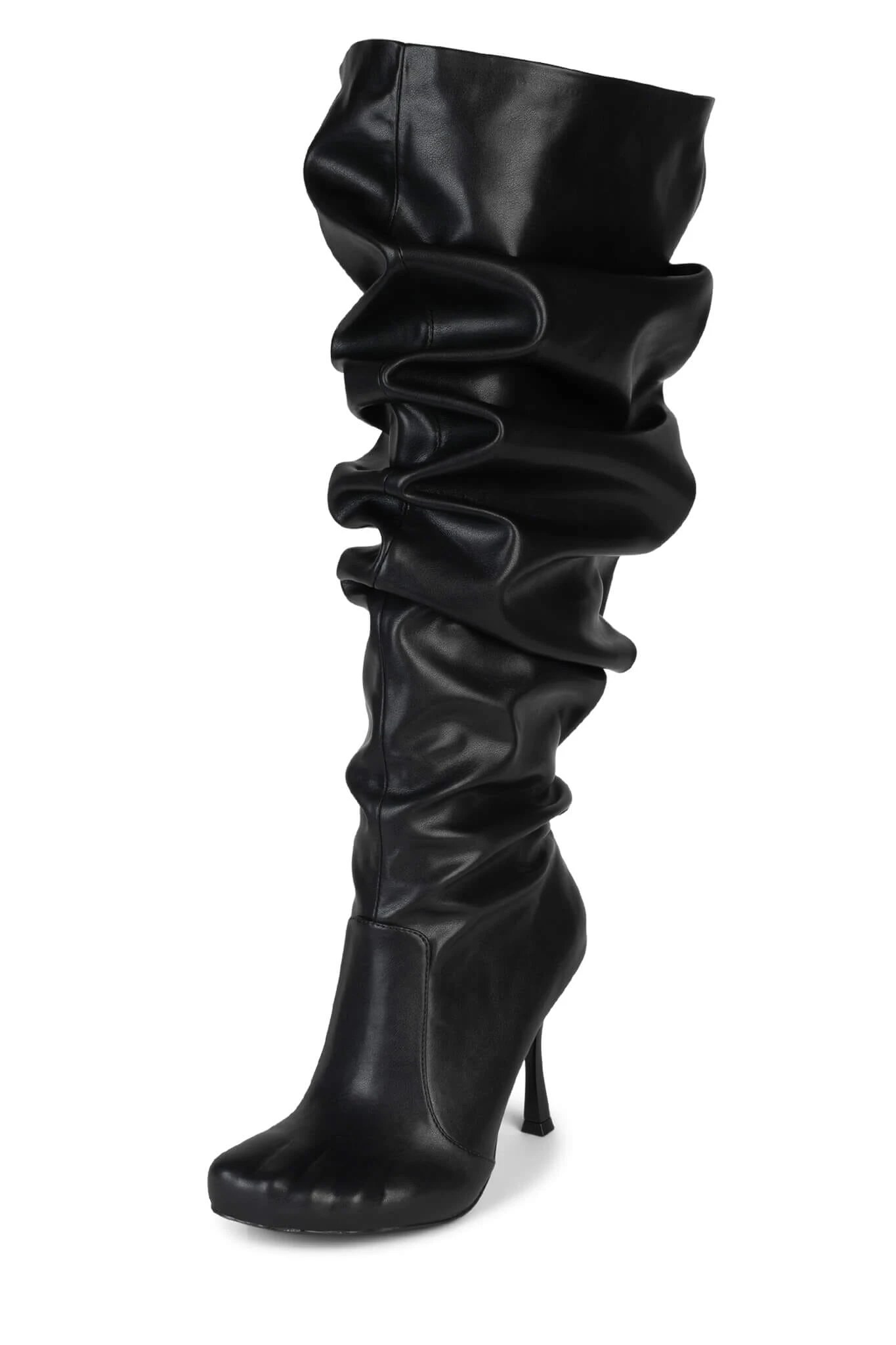 Over-the-knee slouched stiletto boot with embossed toes