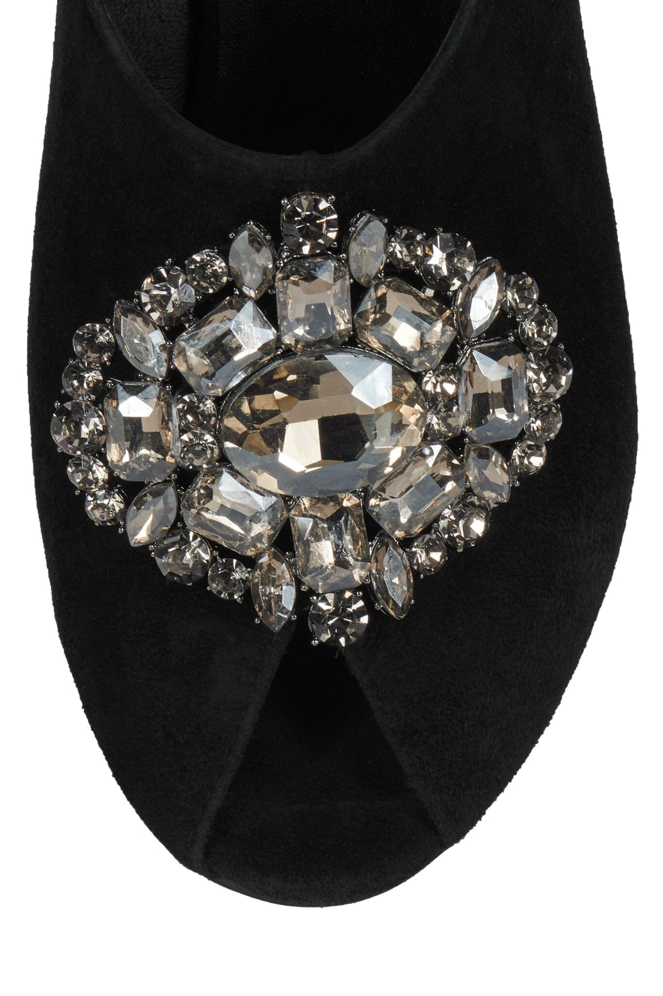 Peep-toe heeled mule with ornament