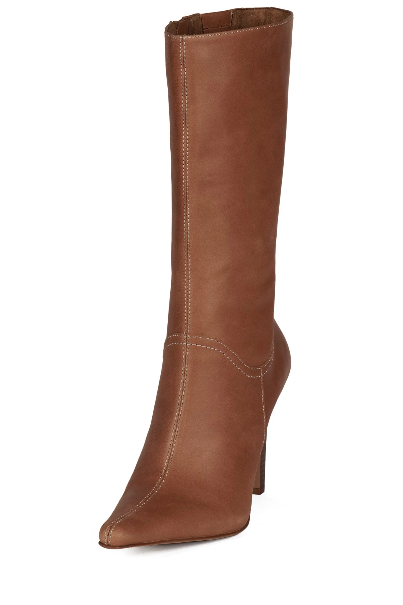 Mid-calf heeled boot with contrast stitchingÂ