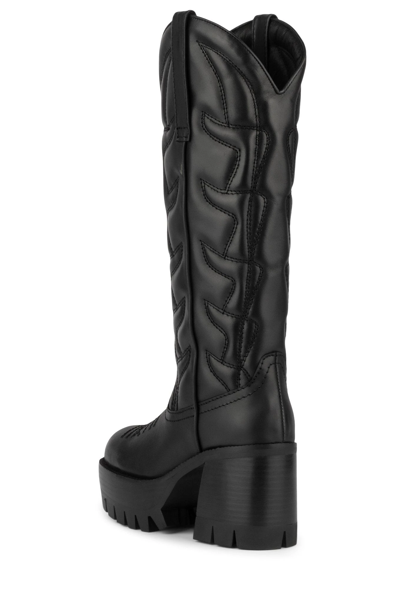 Platform knee-high cowboy boot with lug sole