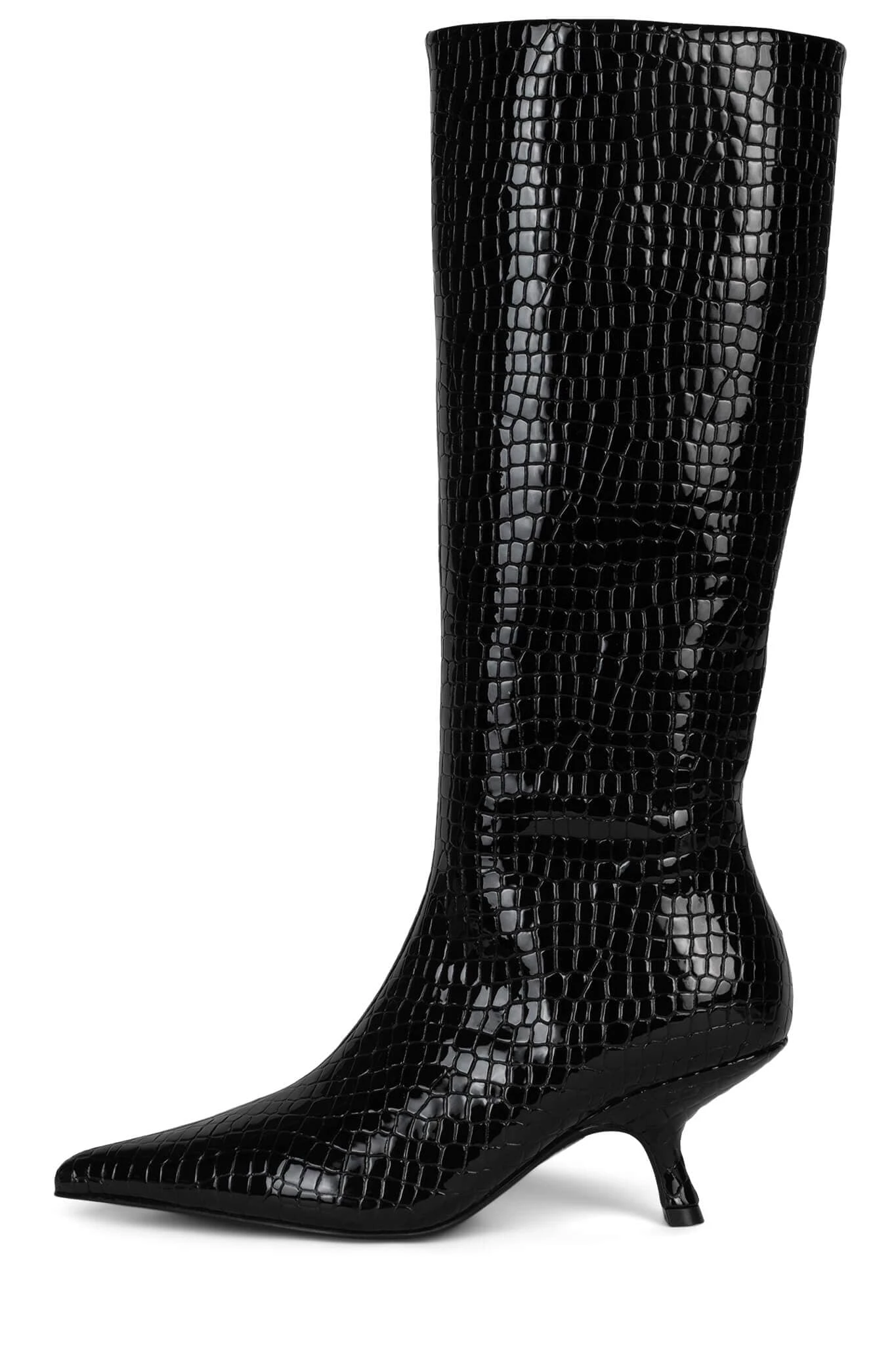 Pointed-toe knee-high kitten heel boot