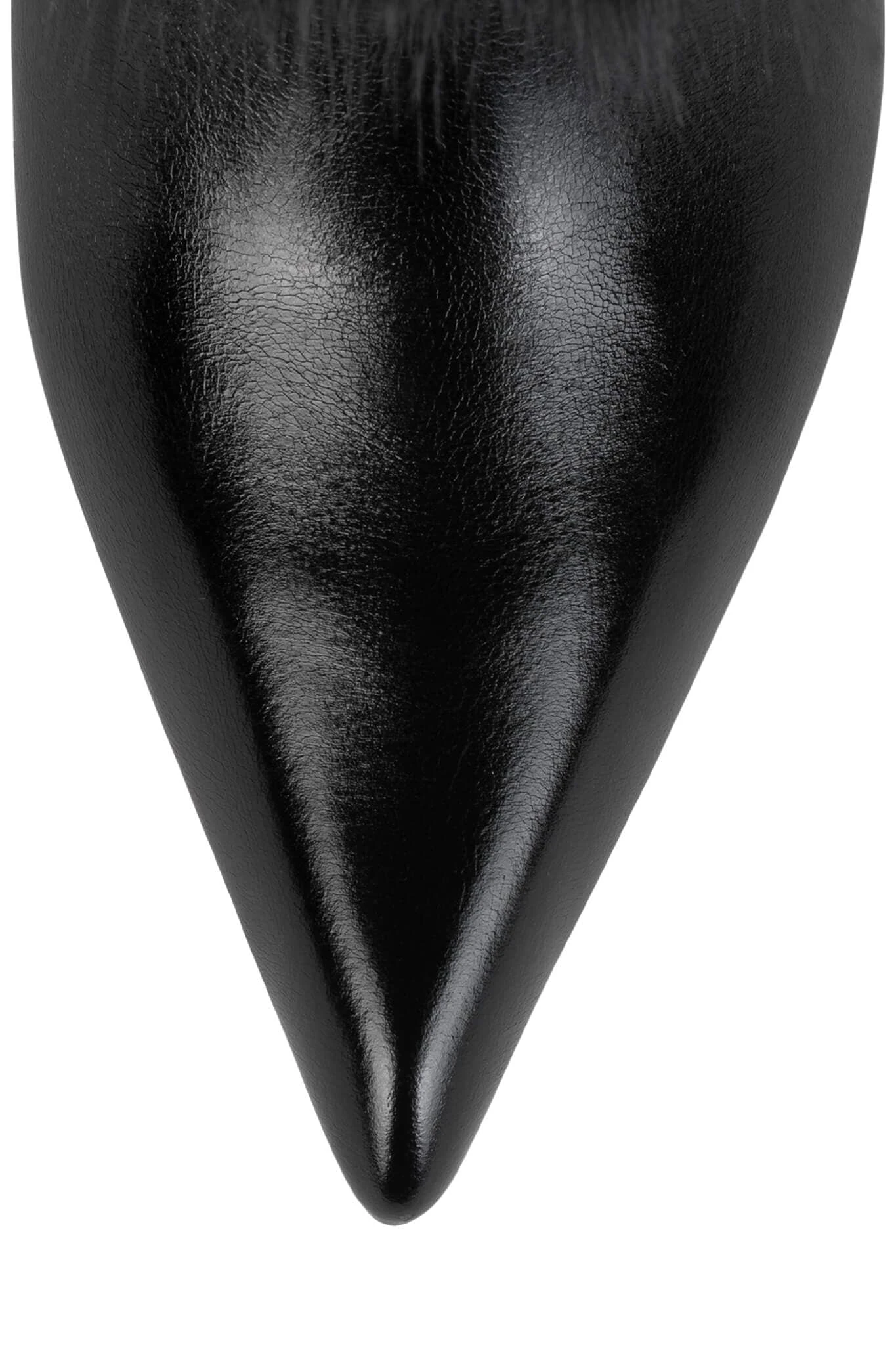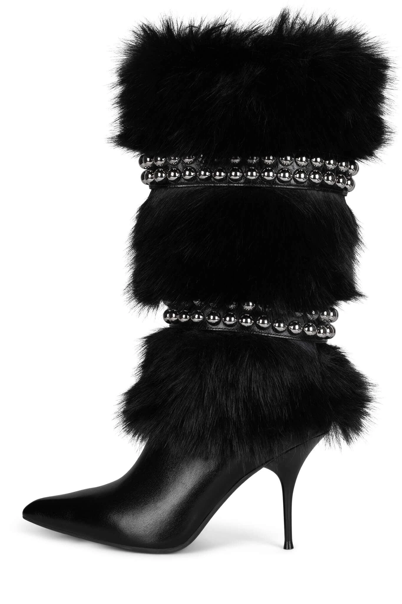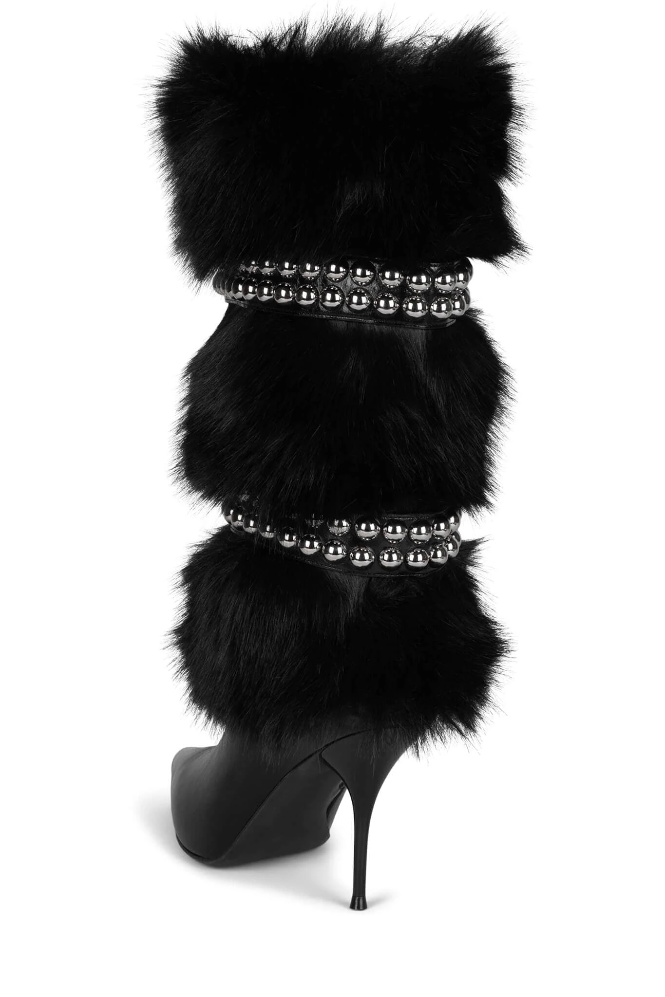 Knee-high faux-fur stiletto boot with metal stud detailÂ