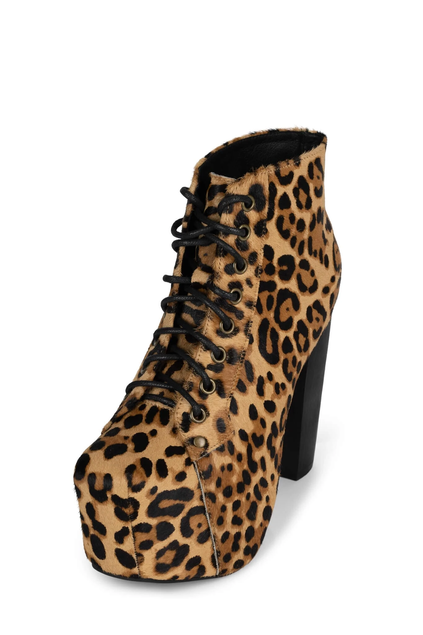 Platform heeled lace-up bootie.