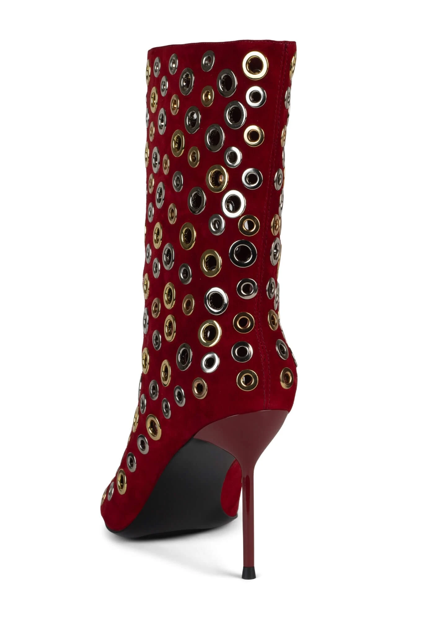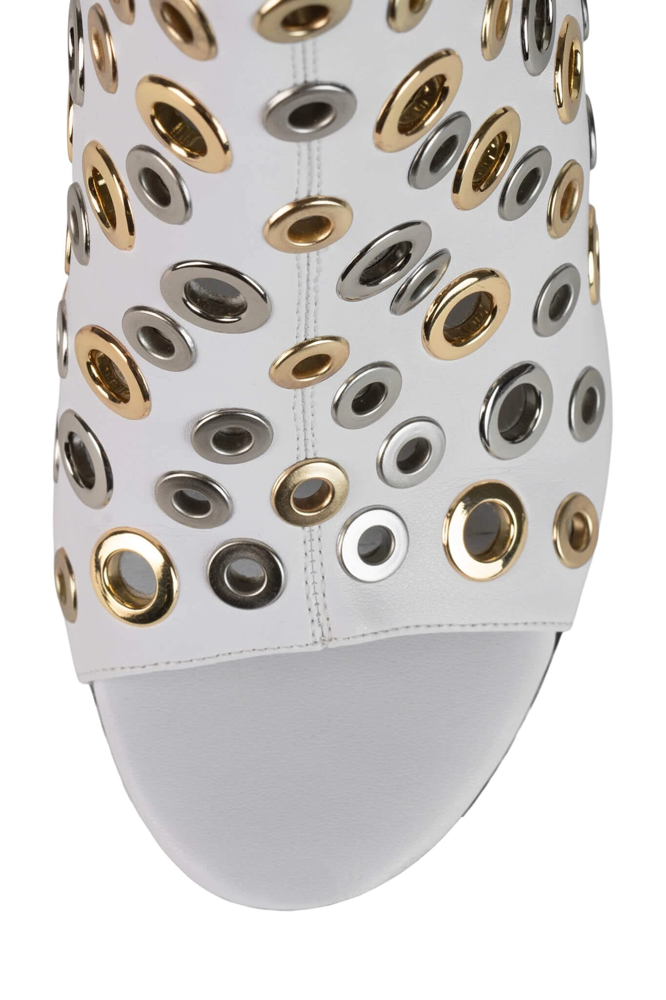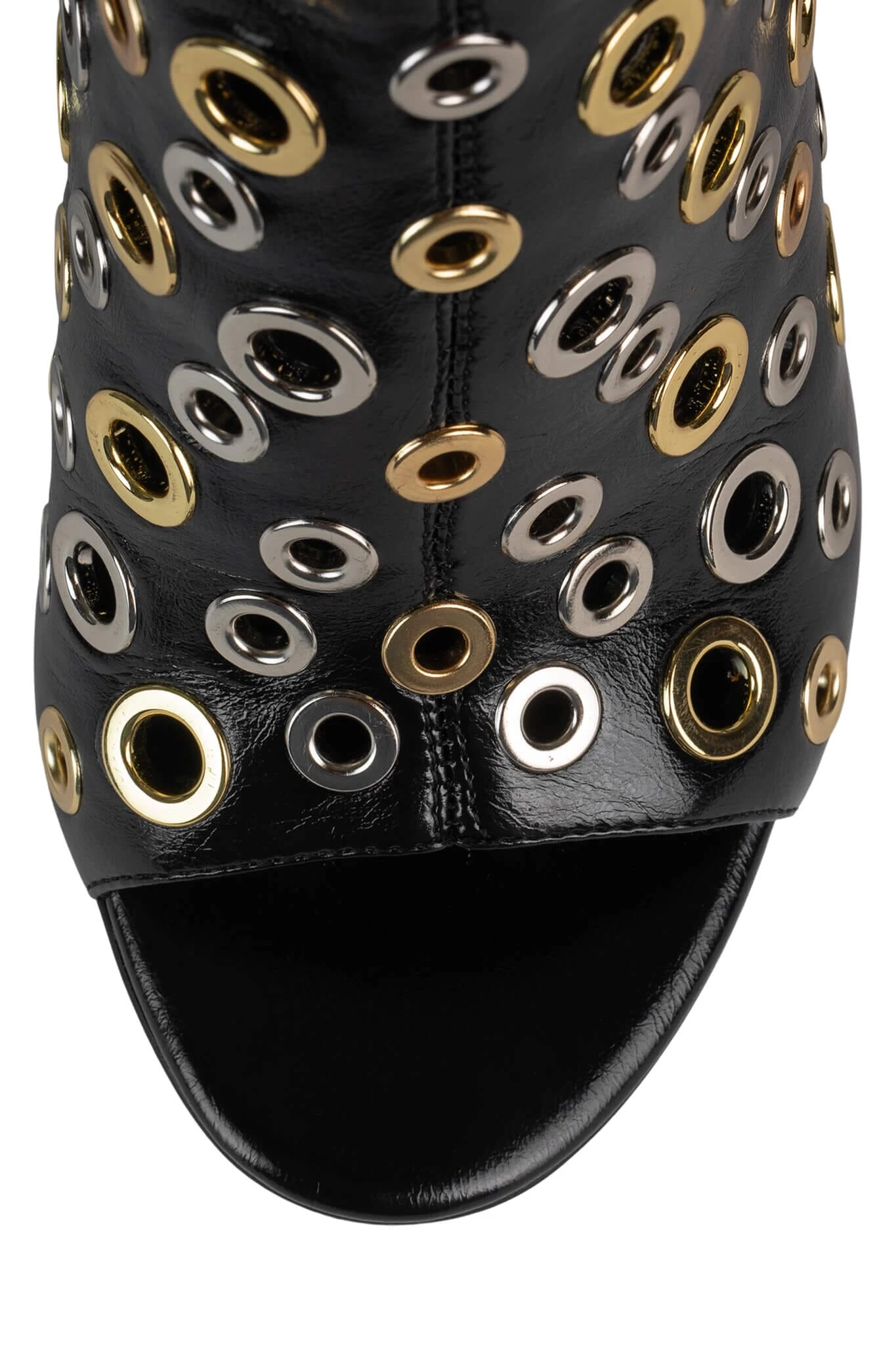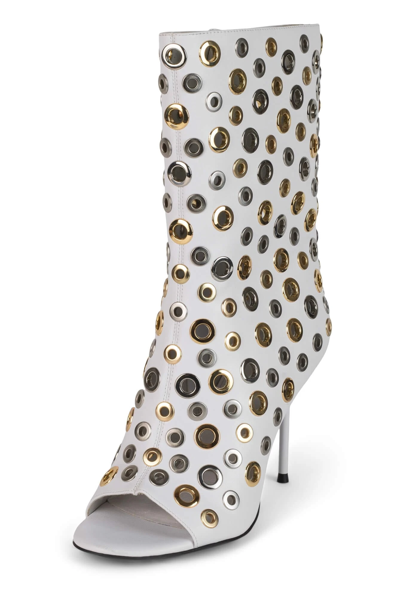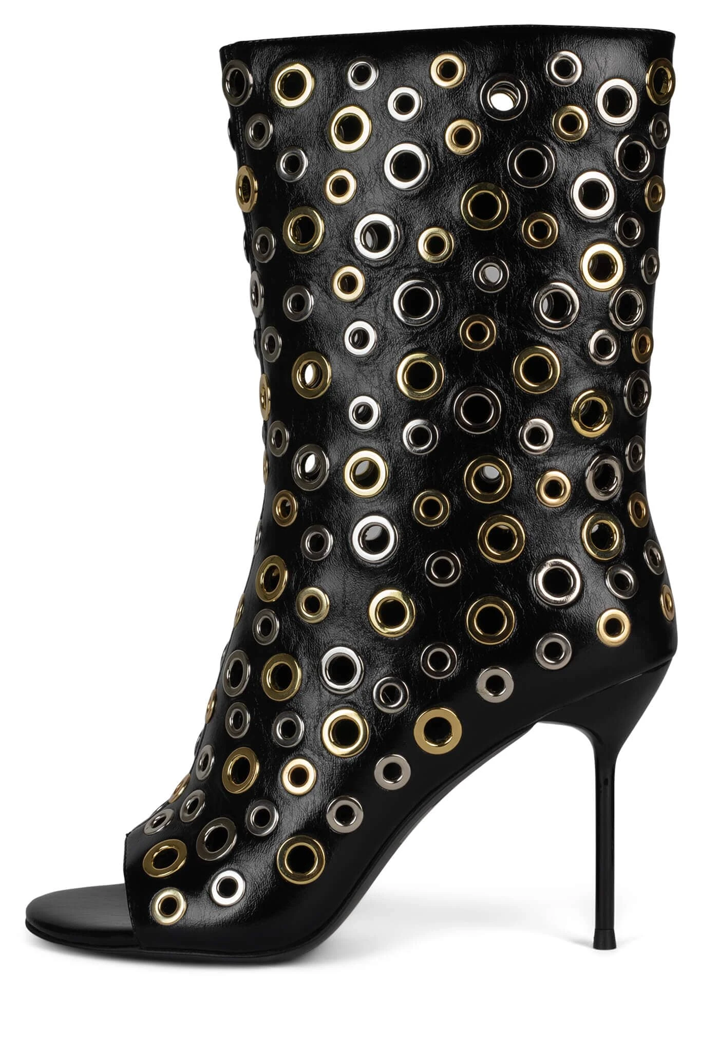 Open-toe stiletto boot with grommets
