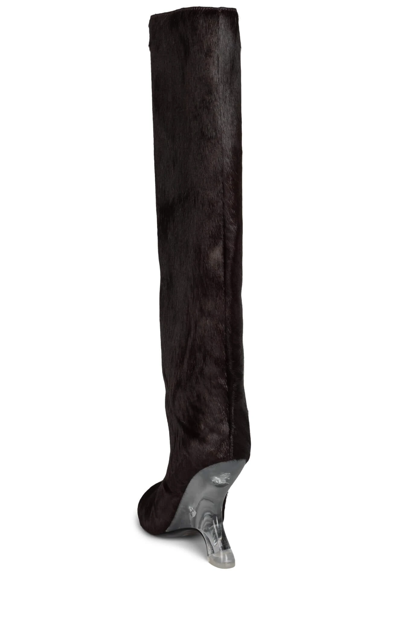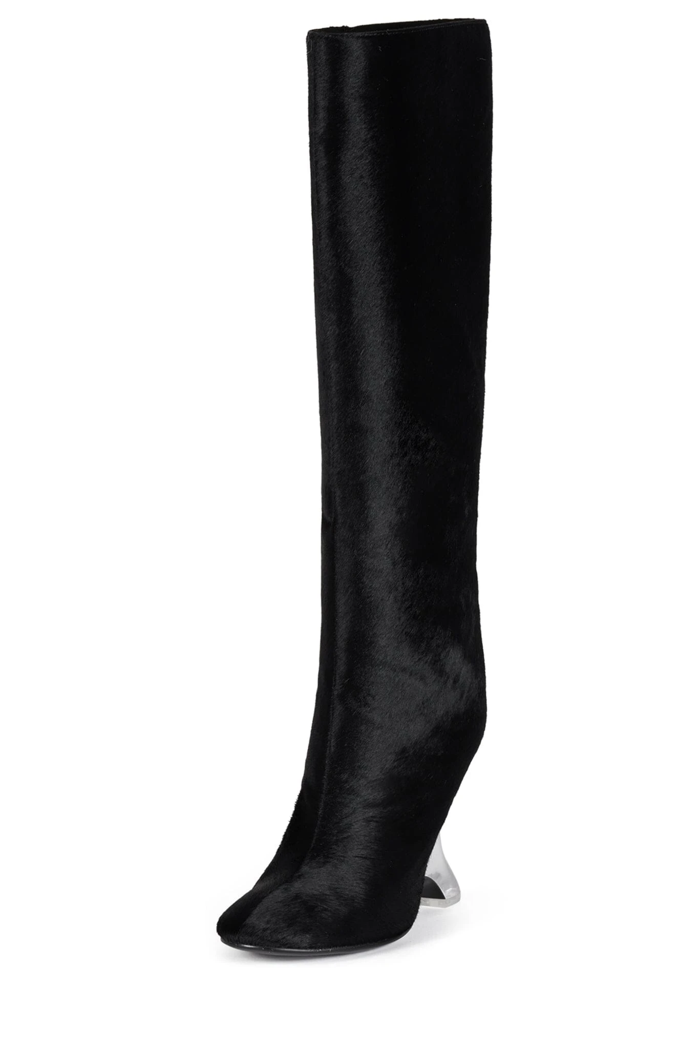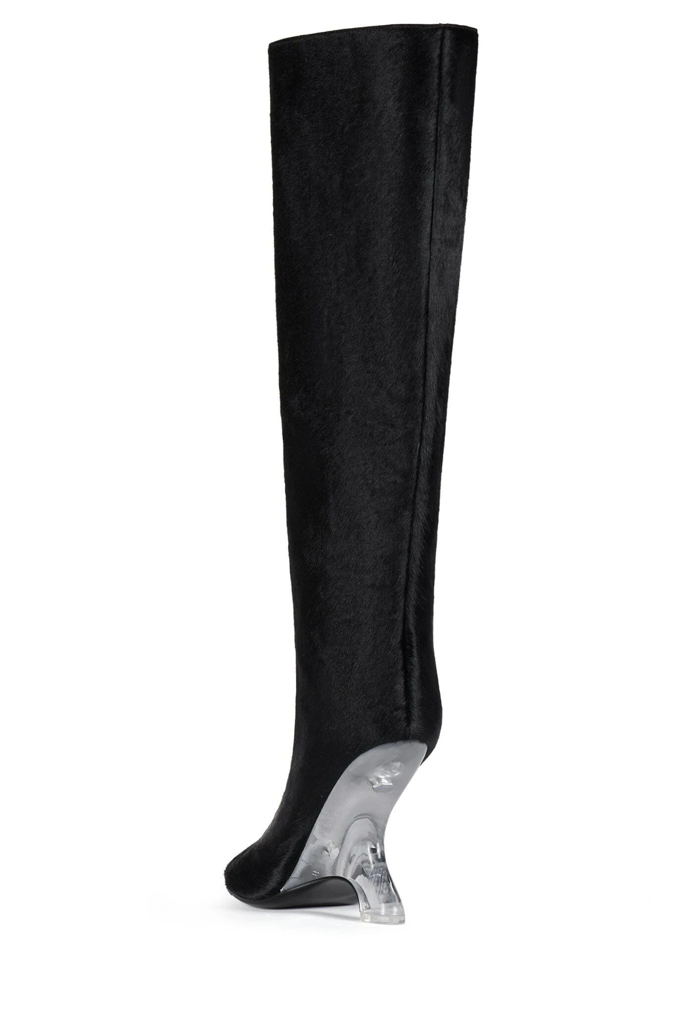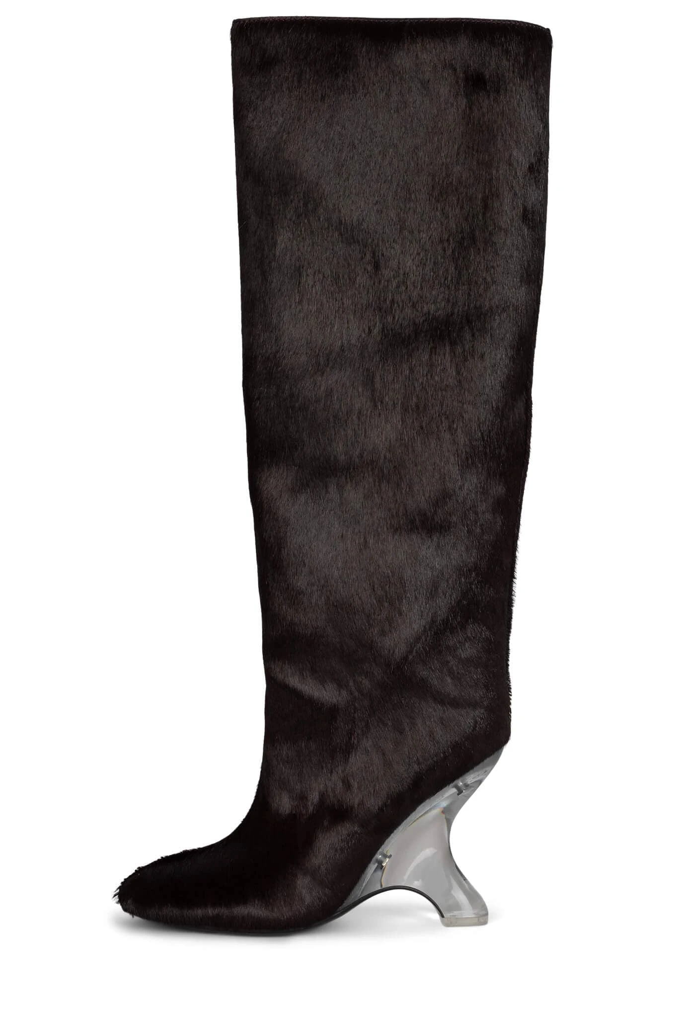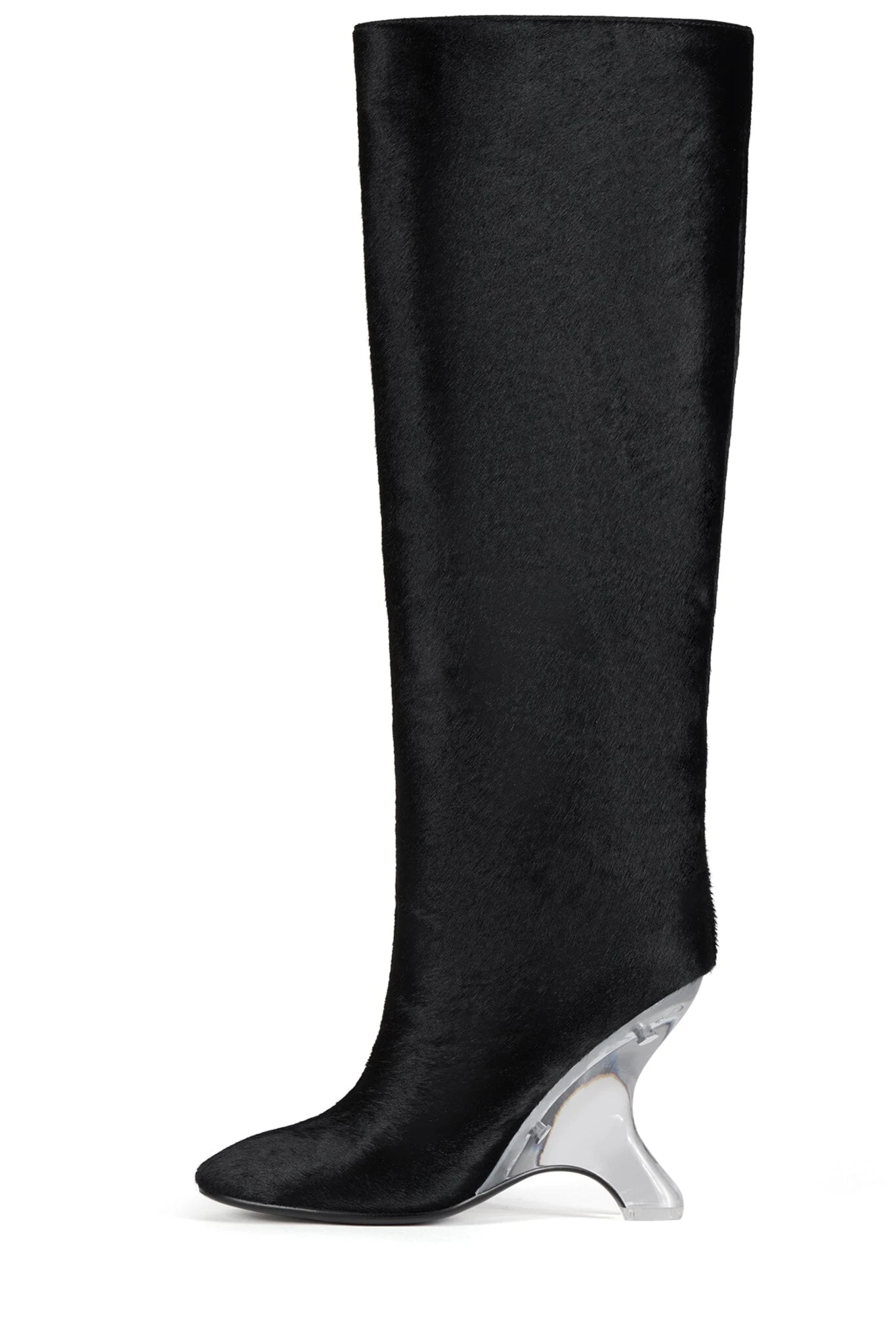 Calf-hair knee-high boot with sculpted lucite wedge