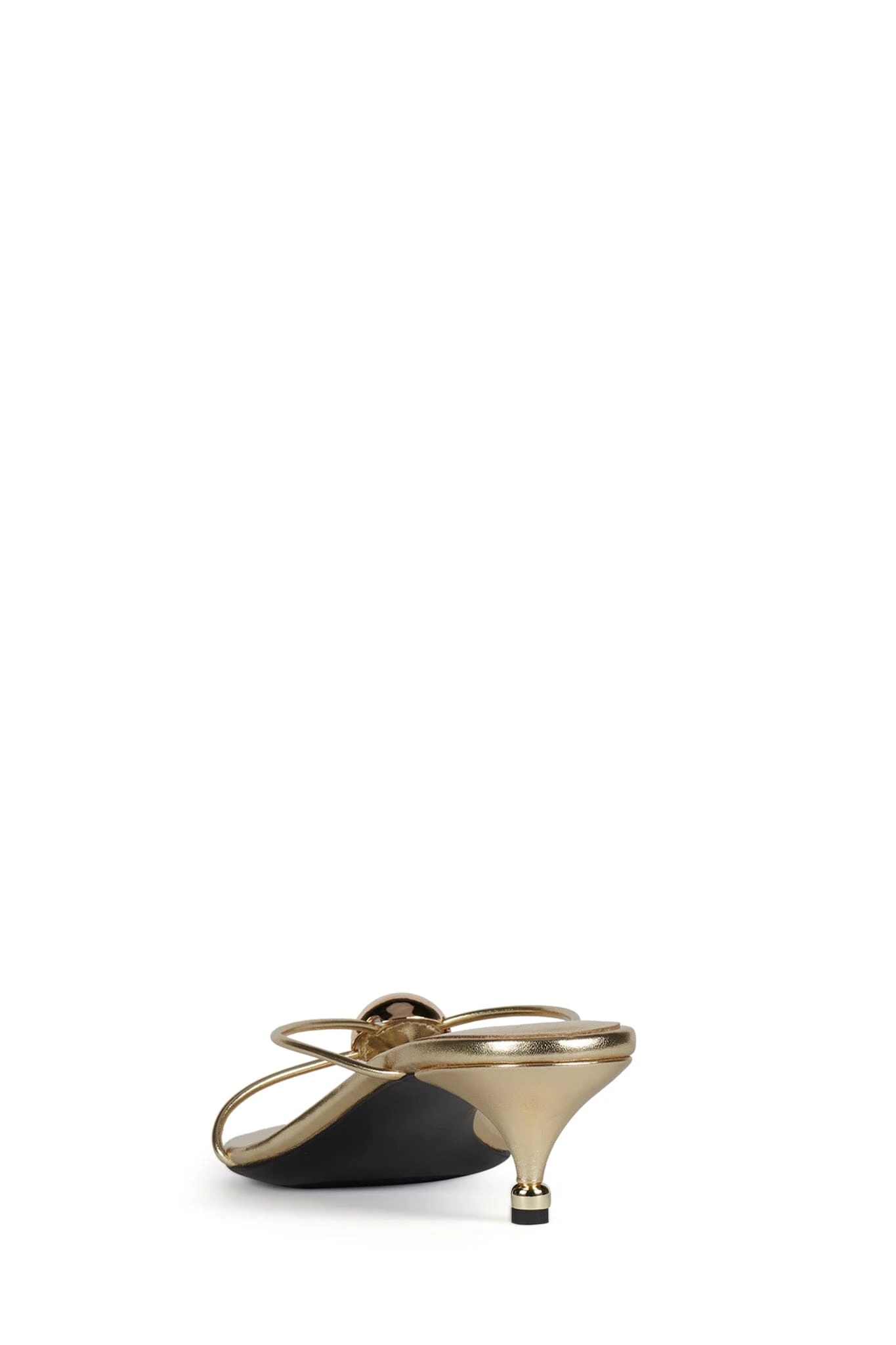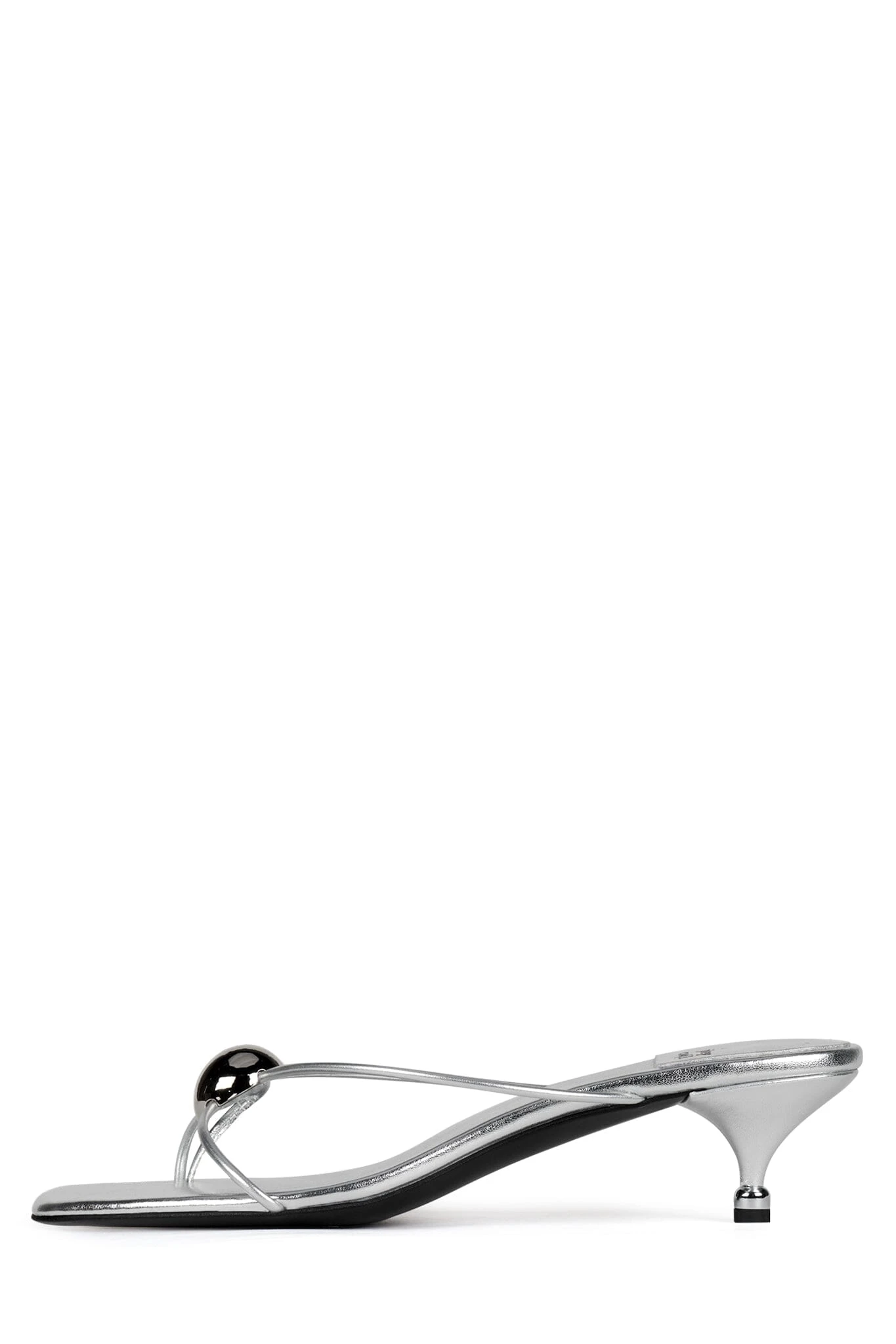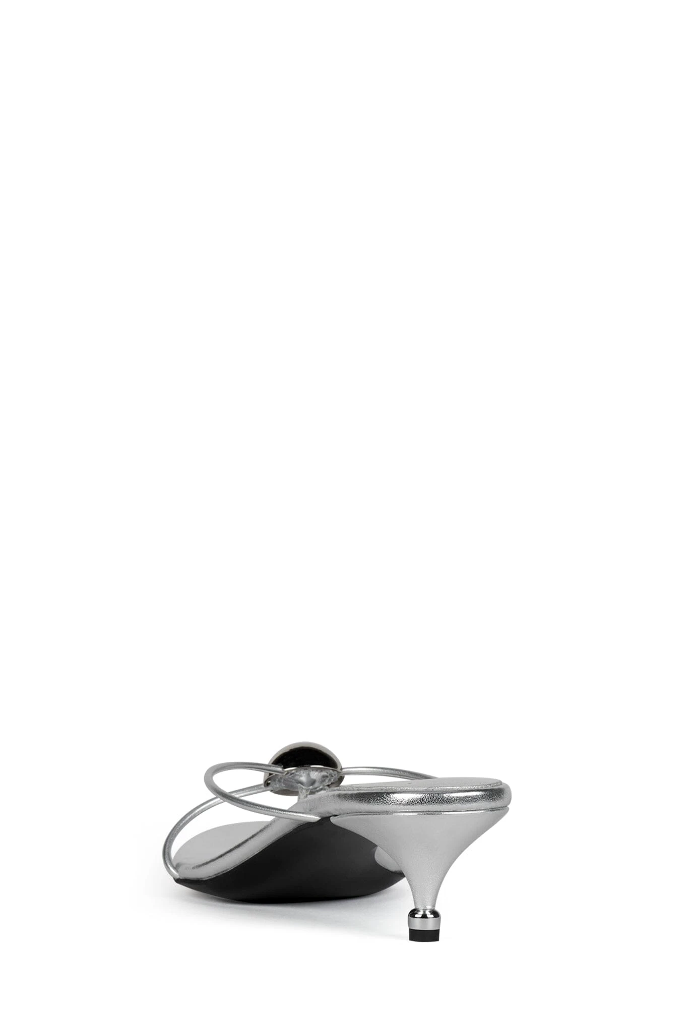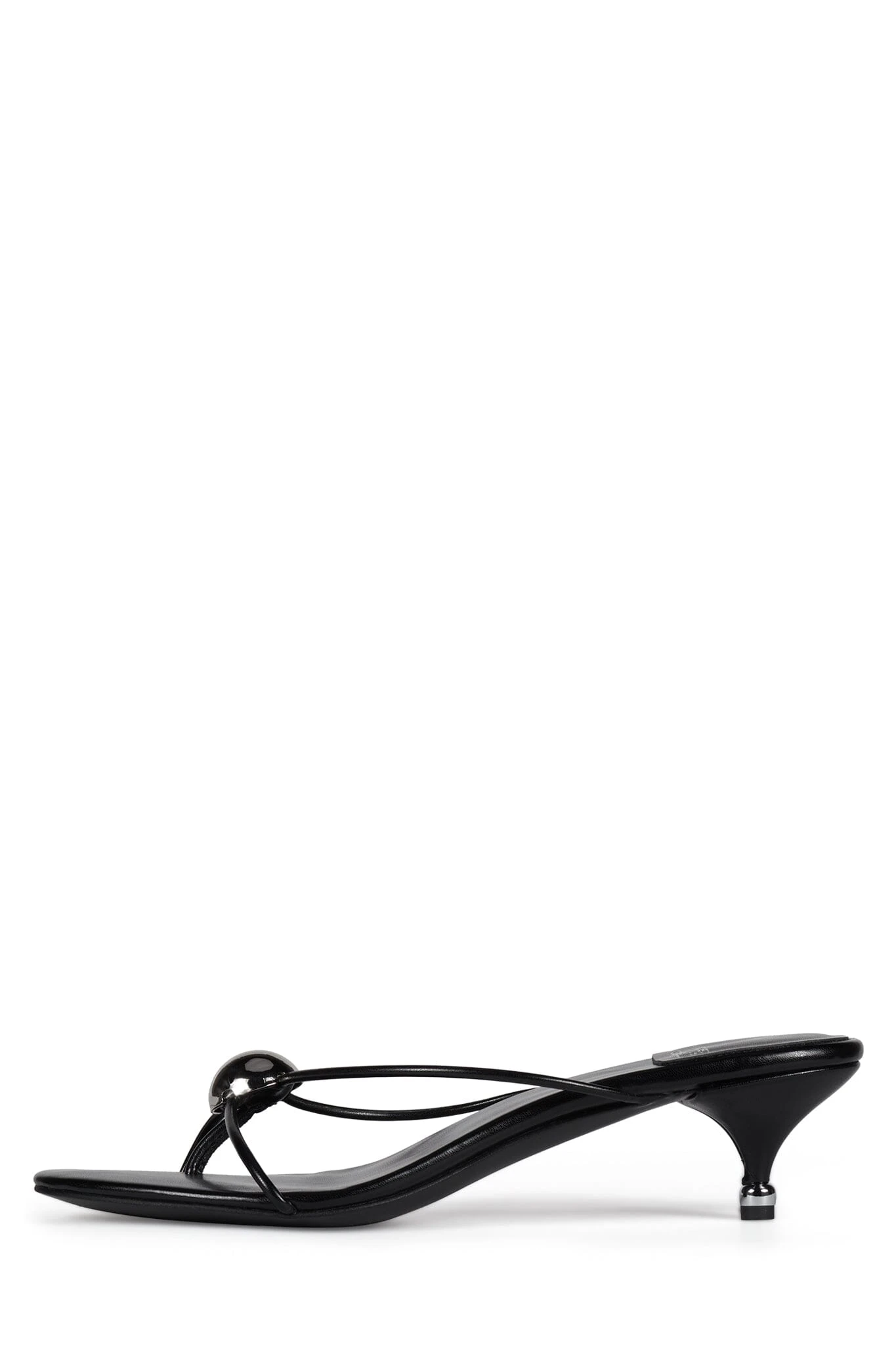 Strappy thong kitten heel sandal with metal ornament