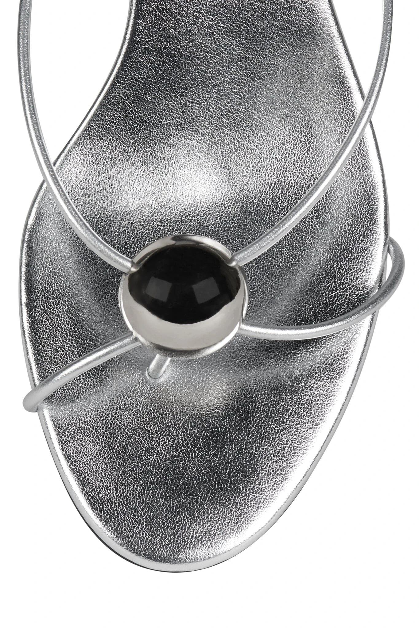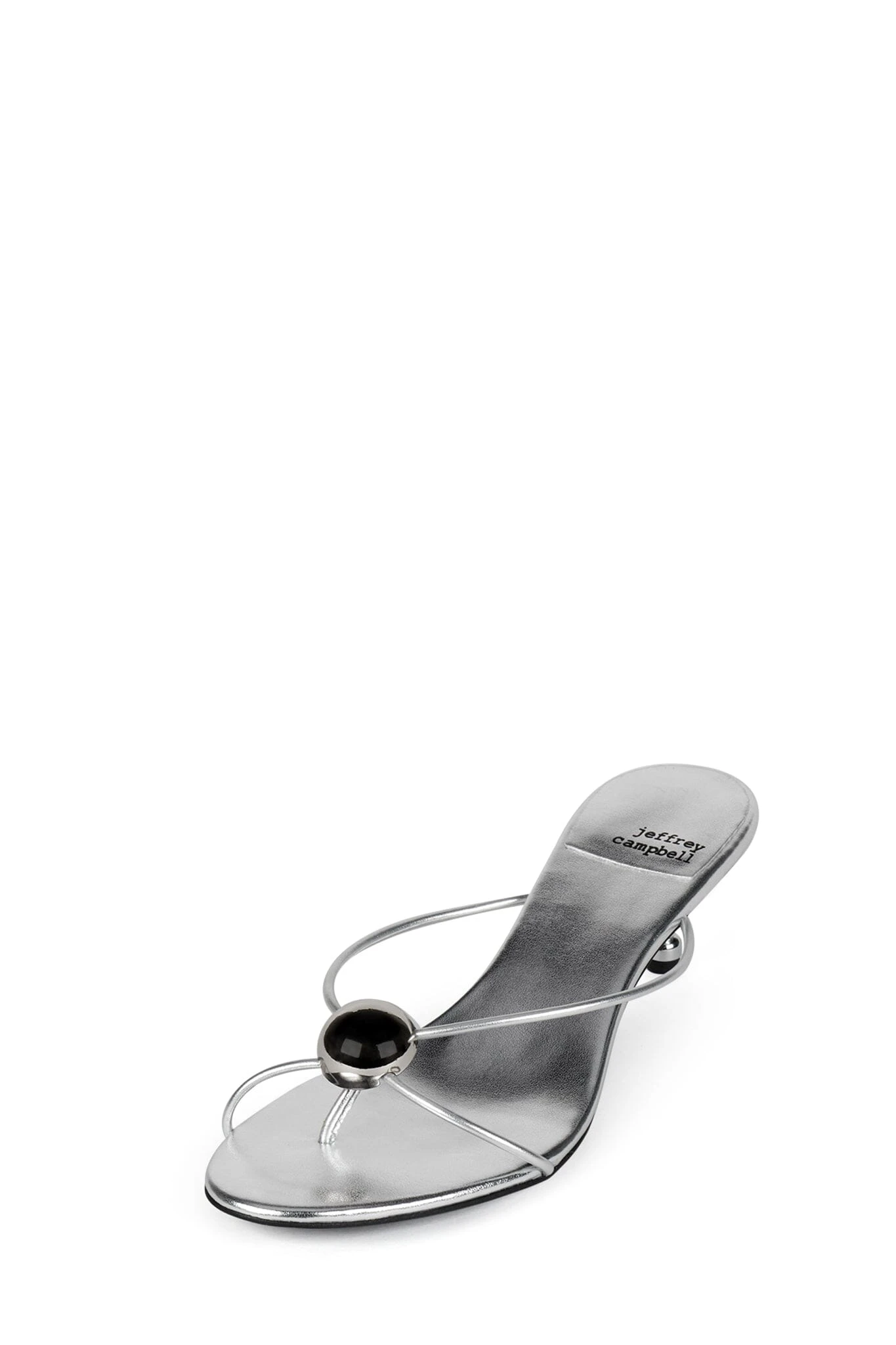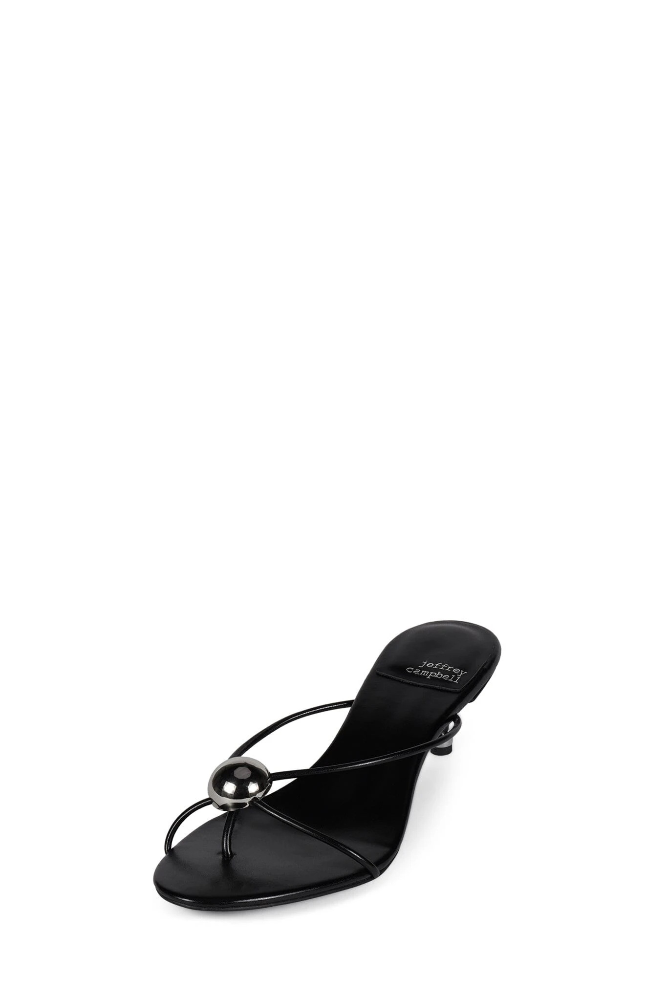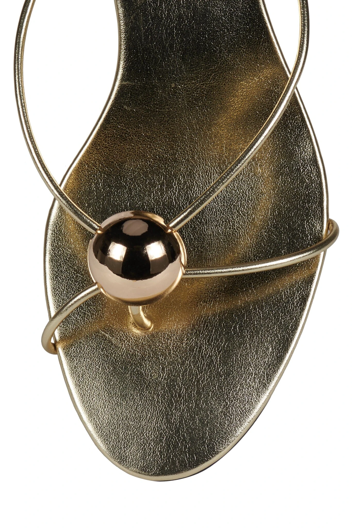 Strappy thong kitten heel sandal with metal ornament