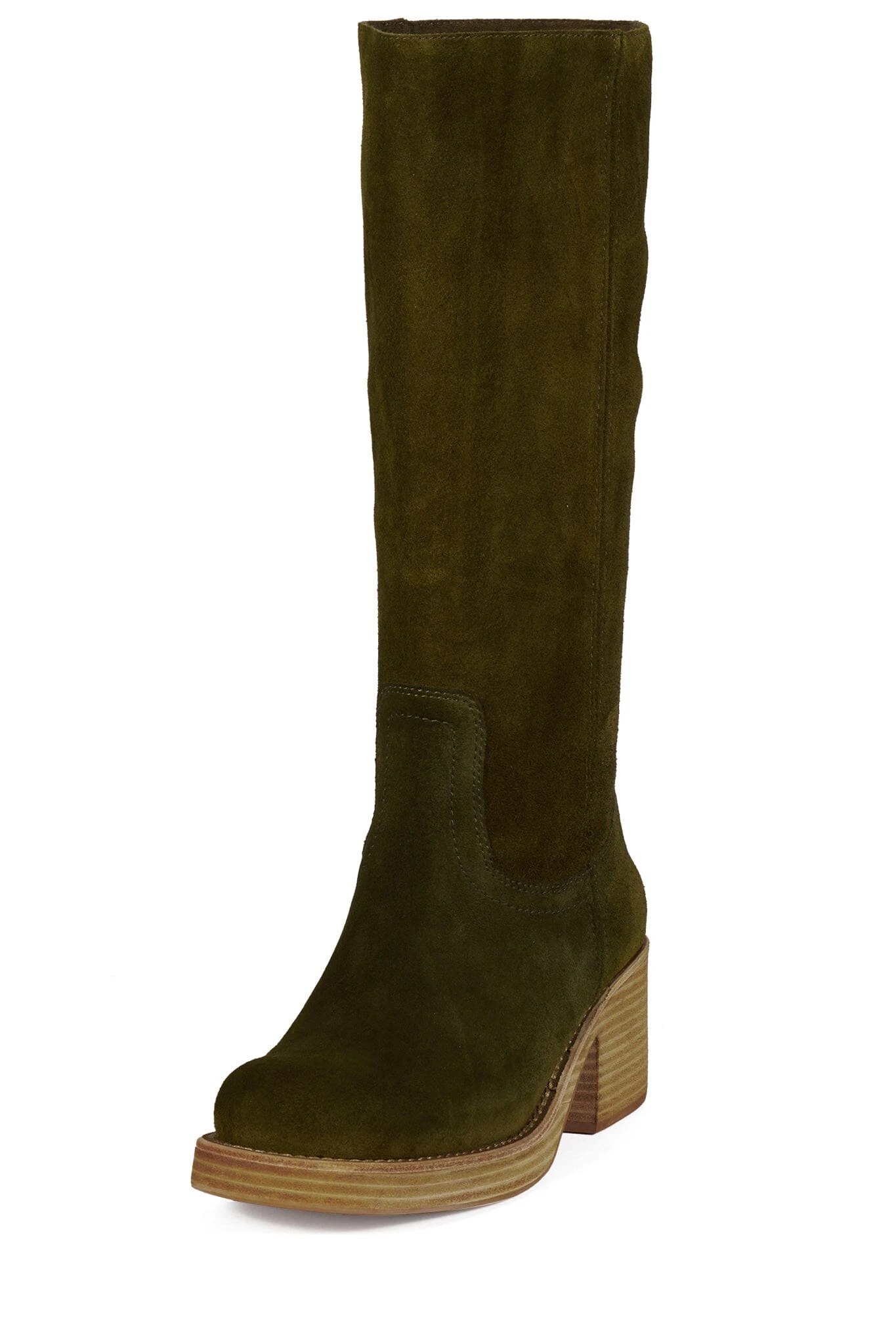 Knee-high stacked-heeled boot