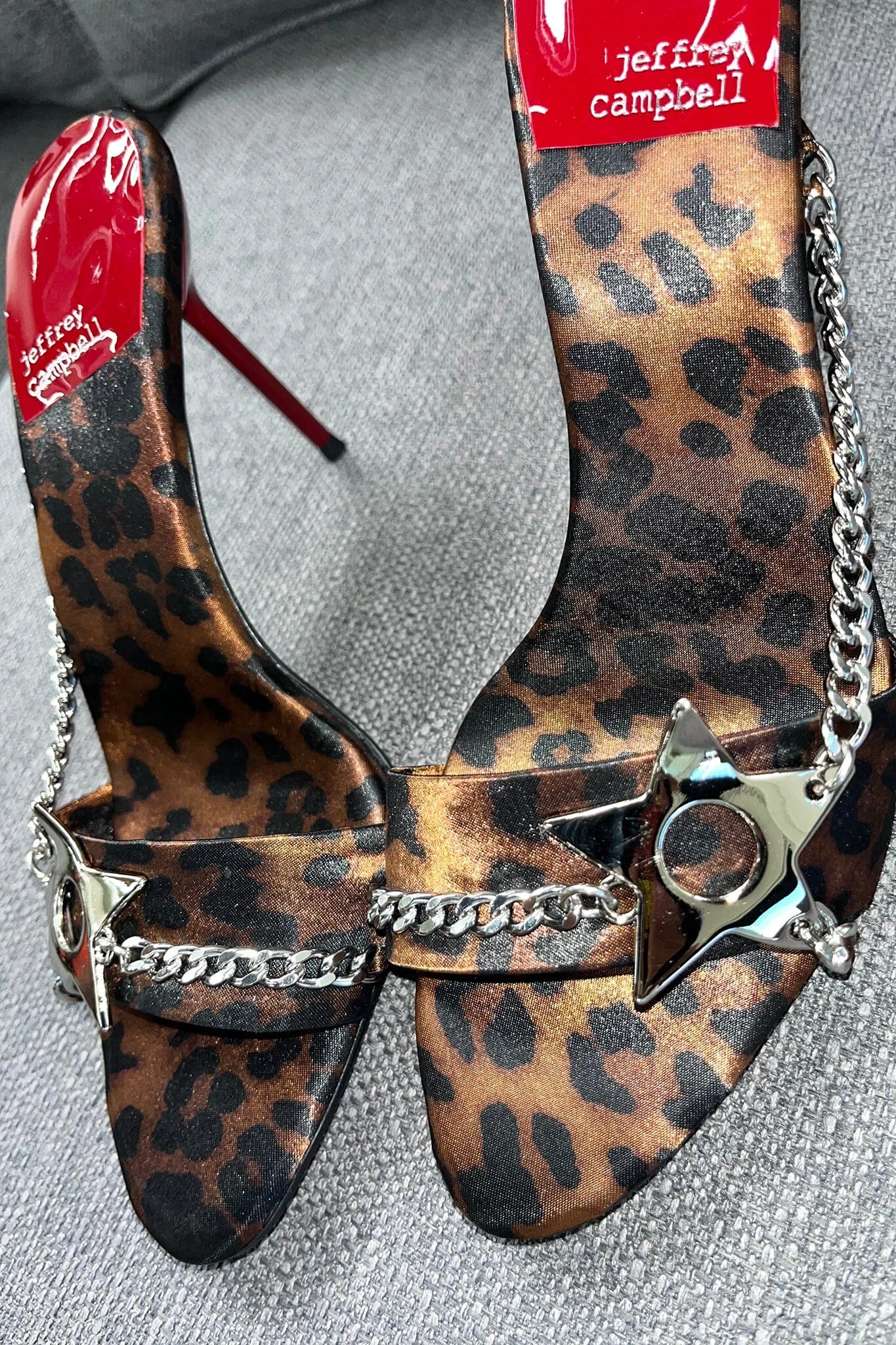 | Color | Brown Patent Silver, Cherry Red Patent Silver, Tan Cheetah Satin Silver, Black Patent Silver |