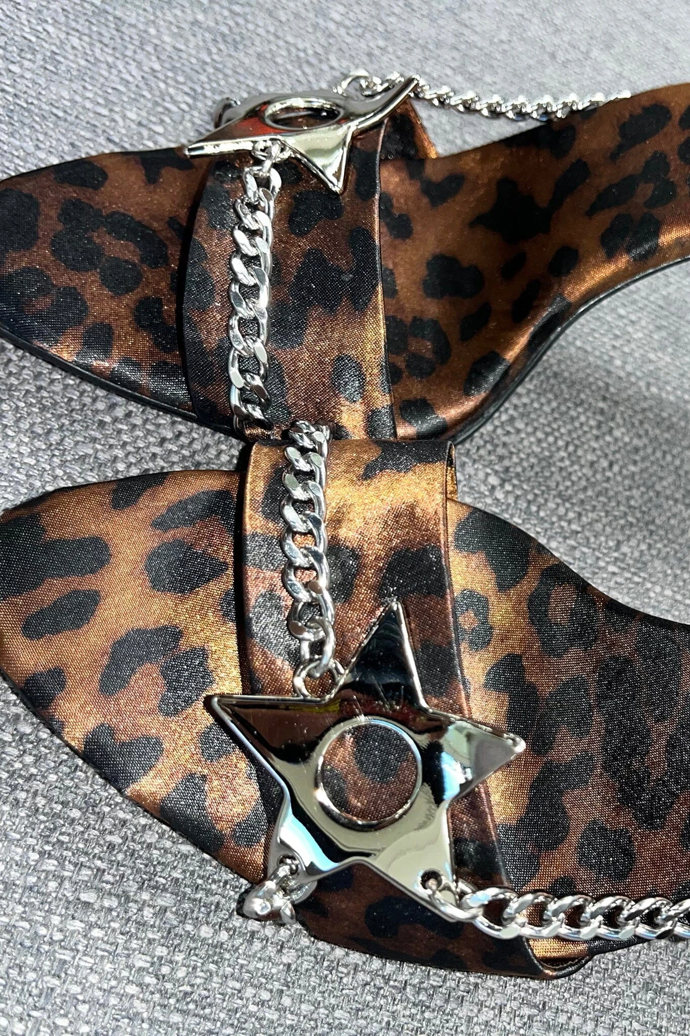 Pointed-toe stiletto sandal with metal star and chain detailÂ