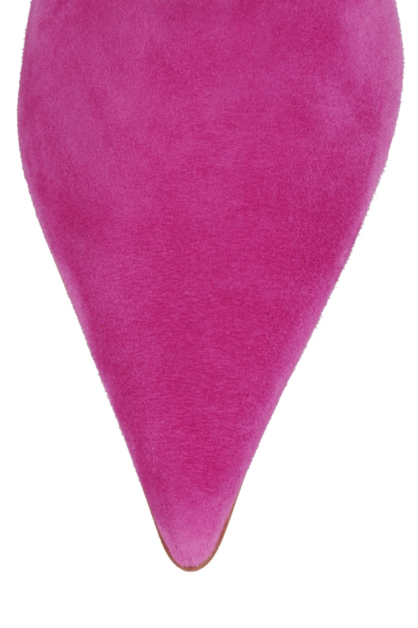 | Color | Orange Suede, Turquoise Suede, Bright Chartreuse Suede, Magenta Suede, Red Suede, Black Patent, Red Patent, White Patent, Gold, Silver |