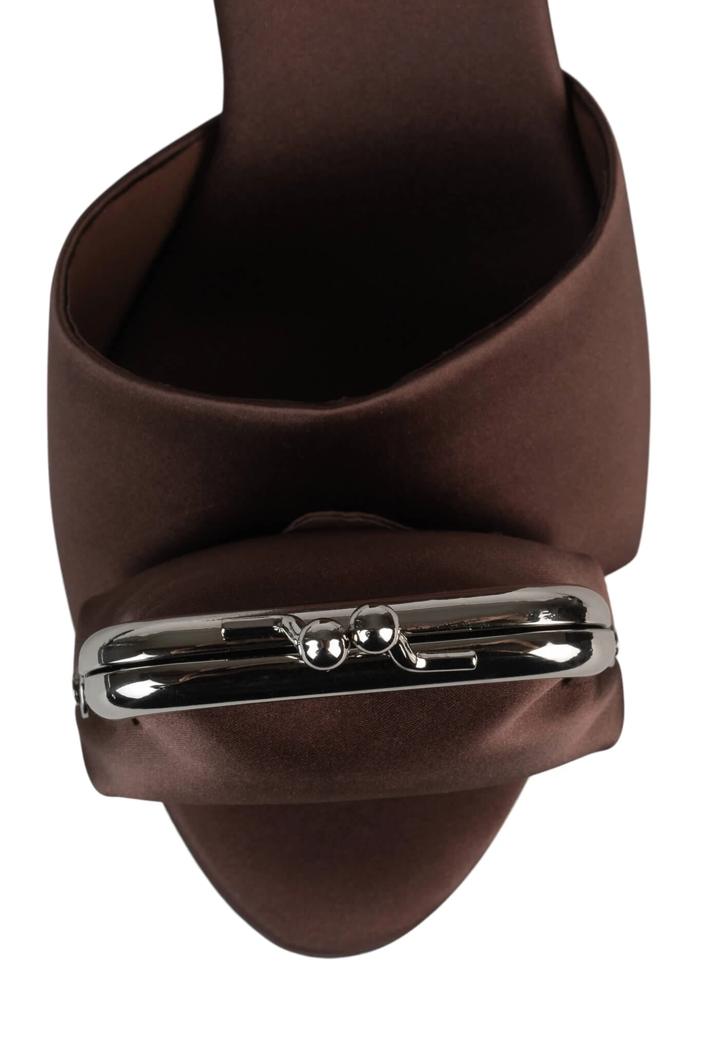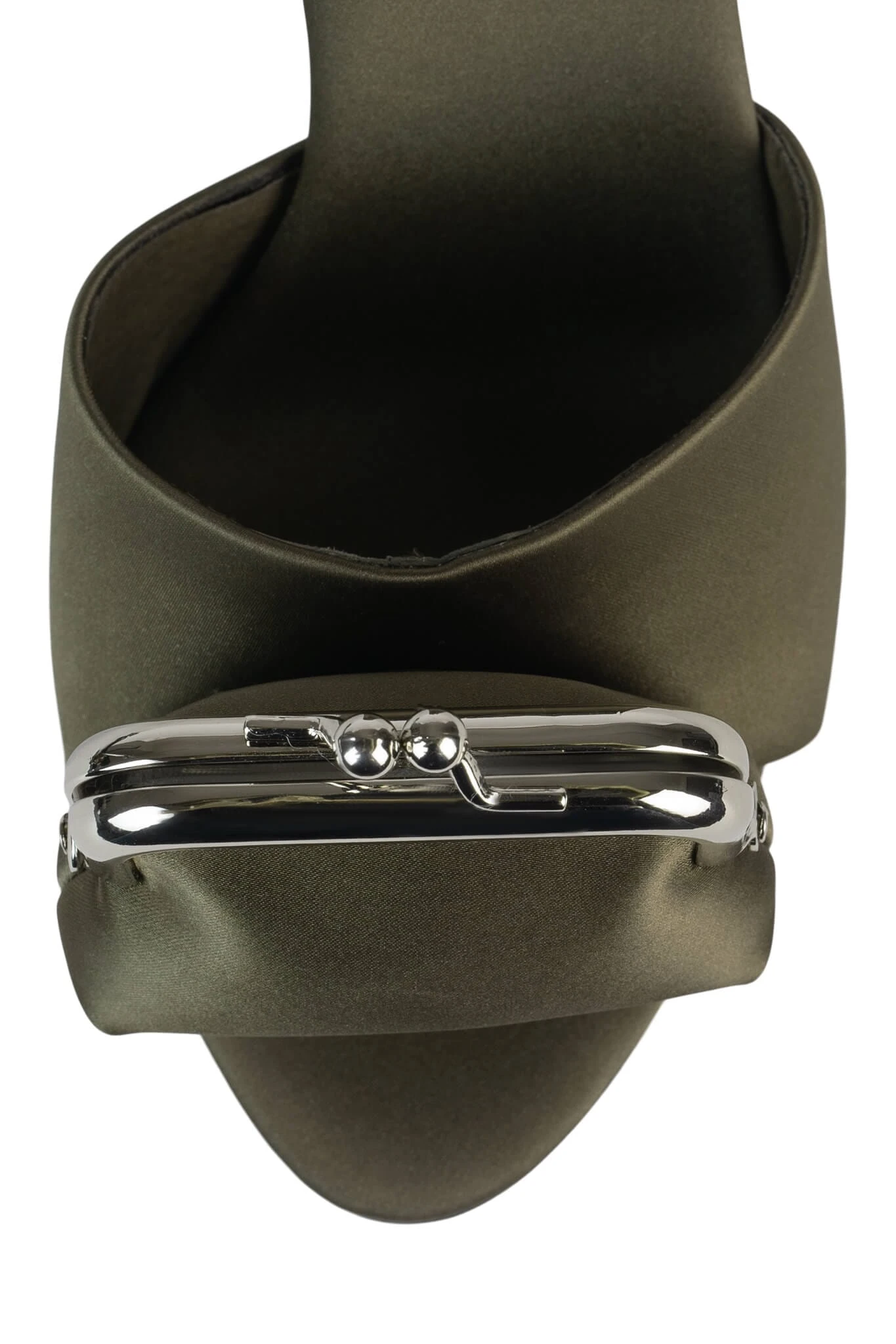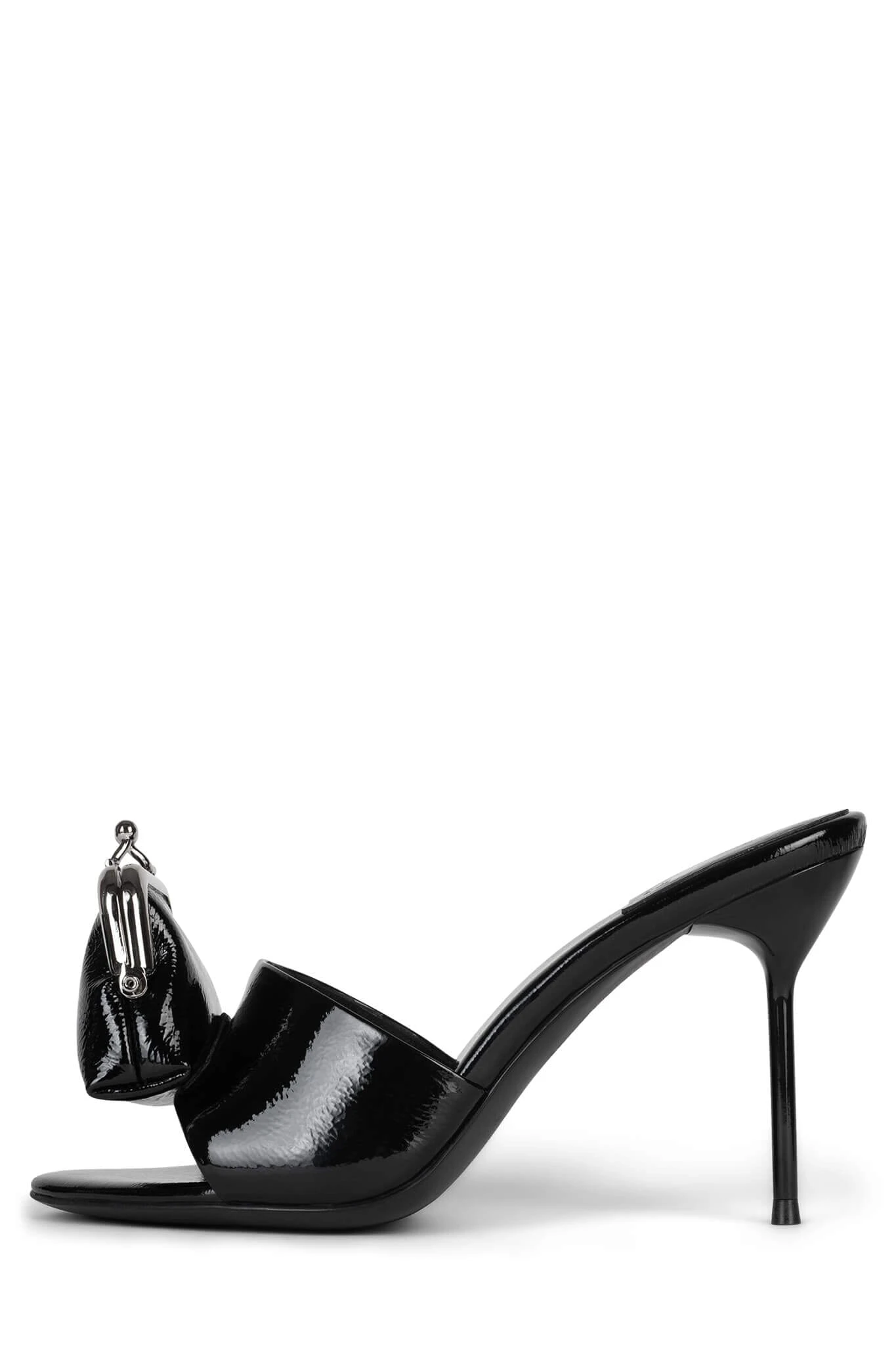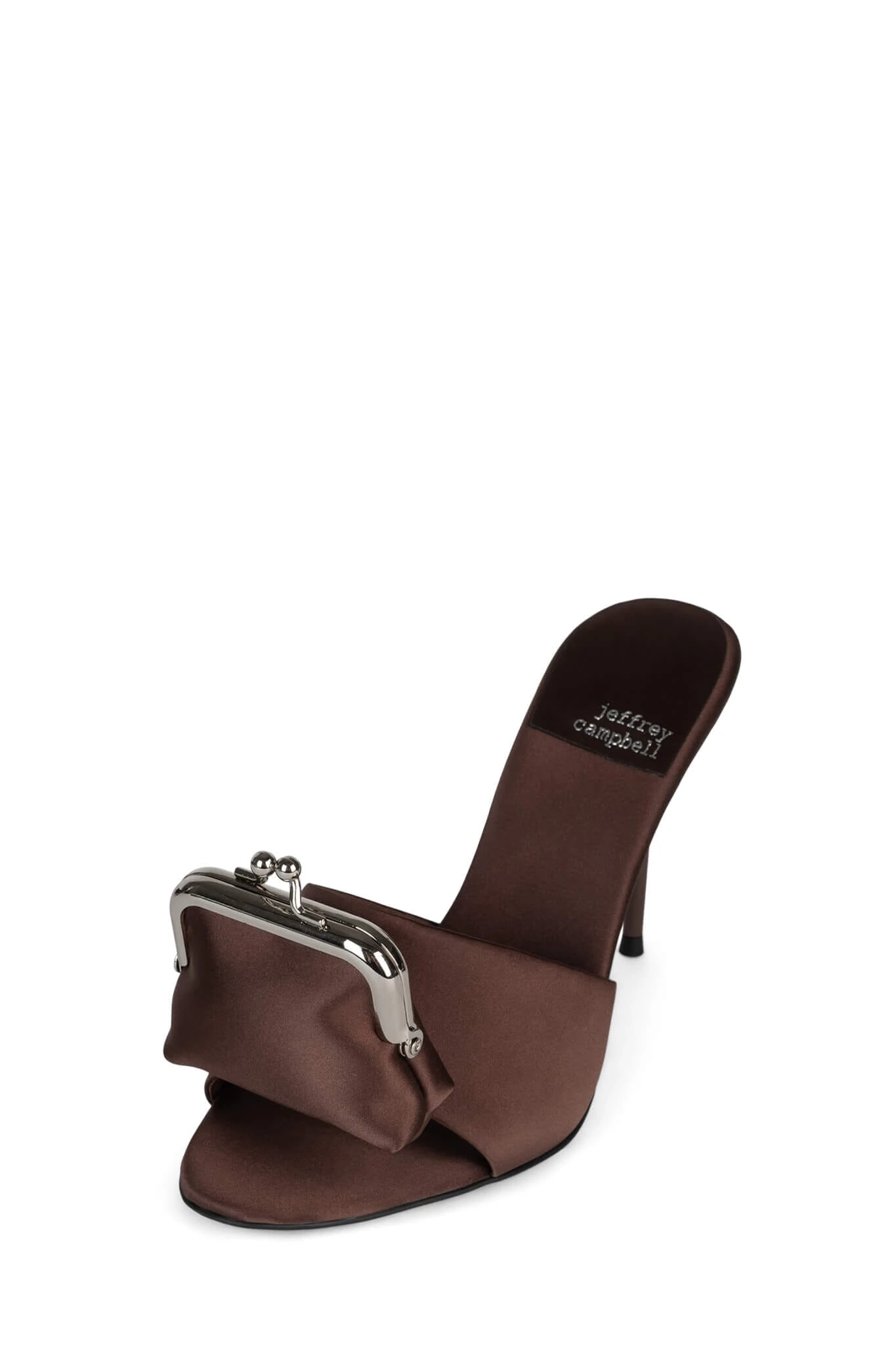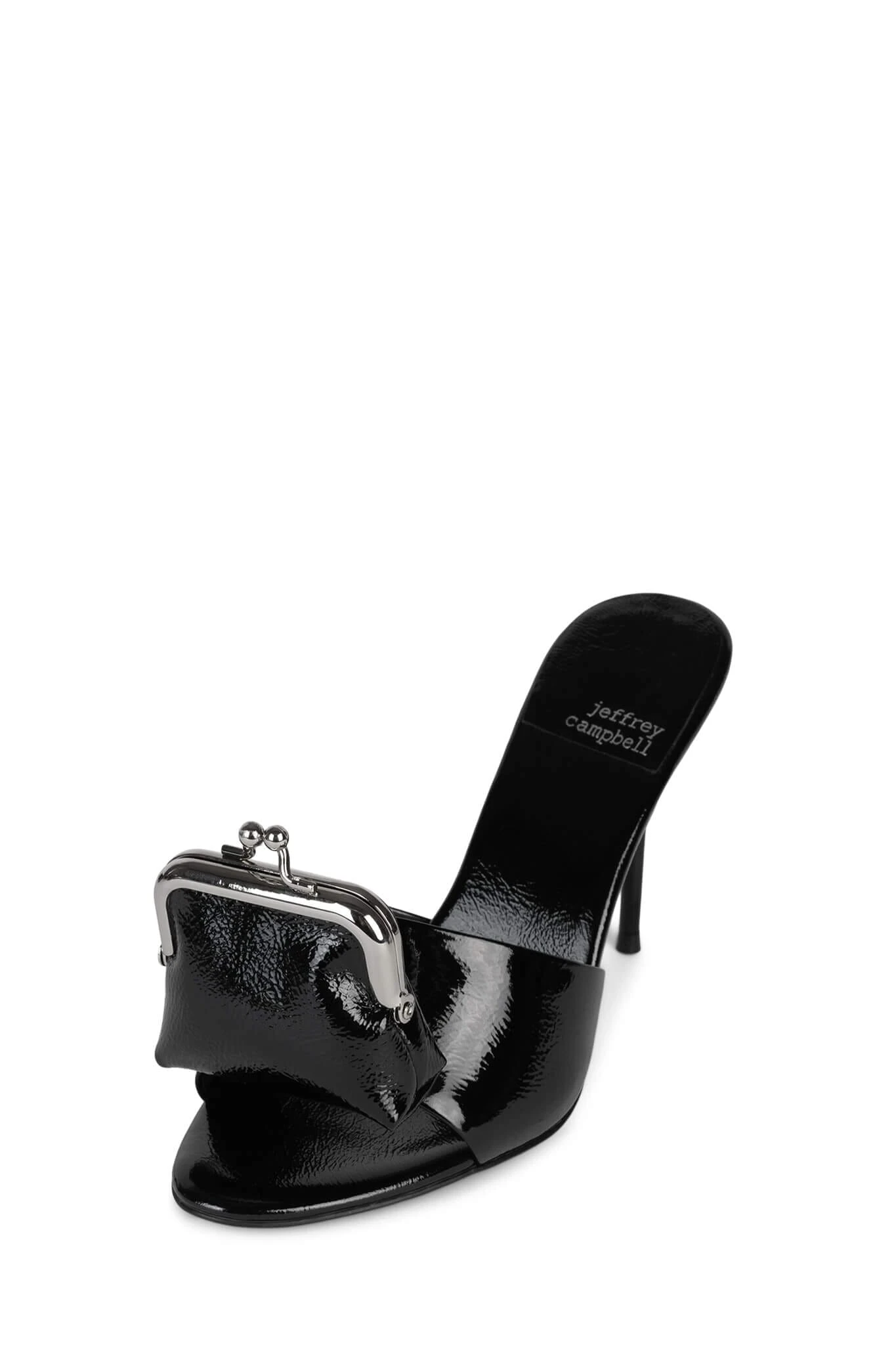 Heeled sandal with functional coin purse detail attached.